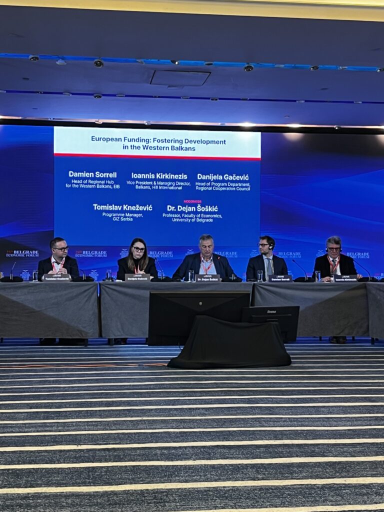 Damien Sorrell, šef regionalnog centra Evropske investicione banke za Zapadni Balkan, Joanis Kirkinezis, potpredsednik i generalni direktor za Balkan kompanije Hil internešenel, Danijela Gačević, načelnica Odeljenja za programe Saveta za regionalnu saradnju (RCC) i Tomislav Knežević, menadžer programa u organizaciji GIZ Srbija (Nemačka organizacija za međunarodnu saradnju) učestvovali su na drugom panelu koji je bio posvećen ulozi evropskih finansijskih institucija u razvoju regiona. Predstavnici su istakli da je 2024. godina donela značajan rast investicija u Zapadni Balkan, posebno u projekte održivosti, digitalizacije i privatnog sektora.