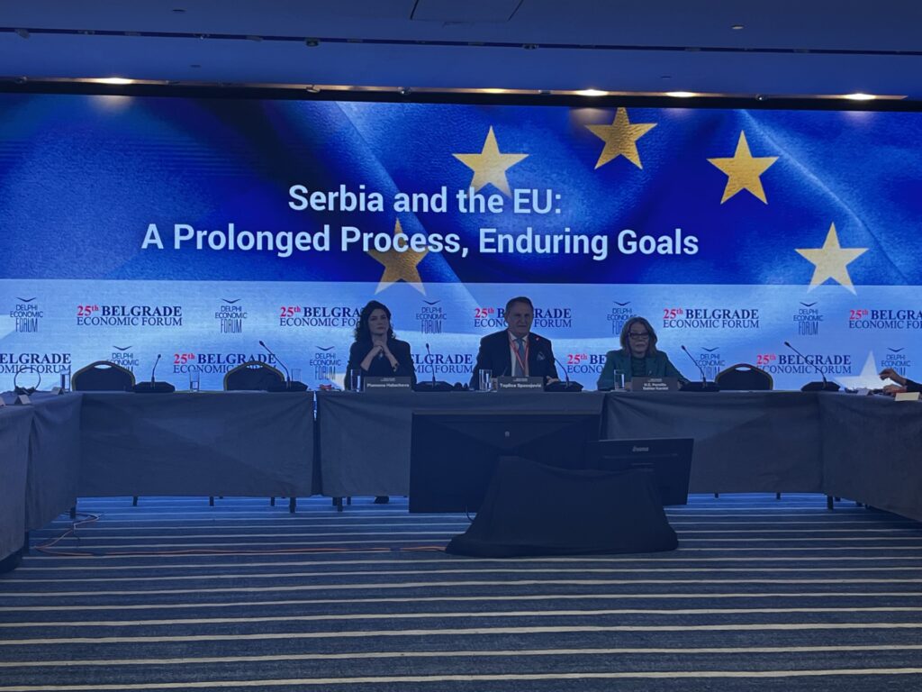 Treći panel otvorio je pitanje evropskih integracija Srbije, koje se nalaze na prekretnici. Plamena Halačeva iz Delegacije EU poručila je da ritam pregovora zavisi isključivo od sprovedenih reformi, posebno u oblastima vladavine prava i spoljne politike. Naglasila je da EU nije izgubila interesovanje za proširenje, podrška je porasla, naročito među mladima širom Evrope. Takođe je rekla da je ključno da Srbija iskoristi prilike koje joj se nude, jer više nije pitanje da li EU želi Srbiju, već da li će Srbija iskoristiti šansu.