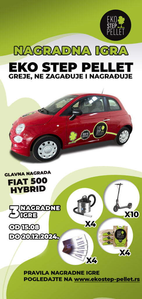 Nagradna igra se organizuje u cilju promocije „peleta kao ekološkog goriva i Eko Step Pellet kao sertifikovanog proizvođača“. Među nagradama koje očekuju srećne dobitnike su palete peleta, usisivači za pepeo, vaučeri hotela Ramonda, elektro trotineti i glavna nagrada – FIAT 500 hibrid.