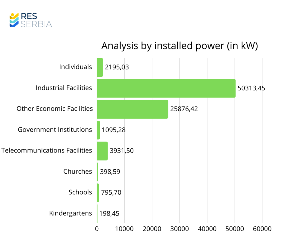 Interestingly, religious facilities are also actively involved in Serbia’s energy transition, with a total solar power capacity of 389.59 kW. The largest prosumer is the Serbian Orthodox Monastery Žiča, with an installed capacity of 50 kW.