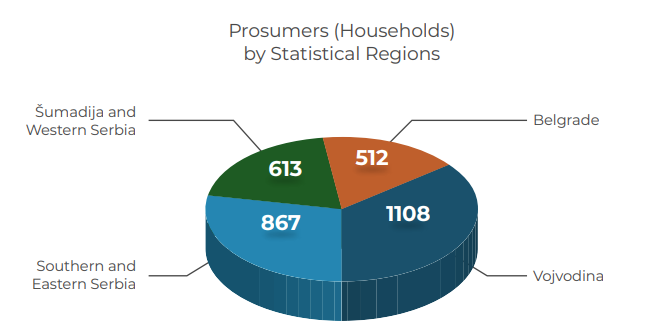 In the statistical regions of the Republic of Serbia, there are differences in the number of prosumers. The region of Vojvodina is in the lead with over 1100 prosumers, which is a third of the total number of all prosumers in this category, while the region of Šumadija and Western Serbia has 613. The city of Belgrade has twice as many prosumers as Vojvodina, i.e. 512 prosjumers, while the region of Eastern and Southern Serbia has 867 prosumers.