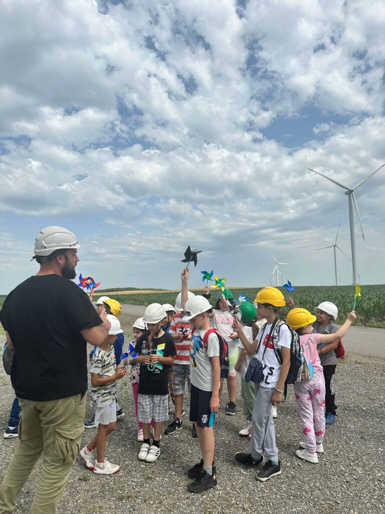 In anticipation of the Global Wind Day, a group of third- and fourth-grade students from the “Sava Maksimović” Elementary School from Mramorko visited the Čibuk 1 wind park.