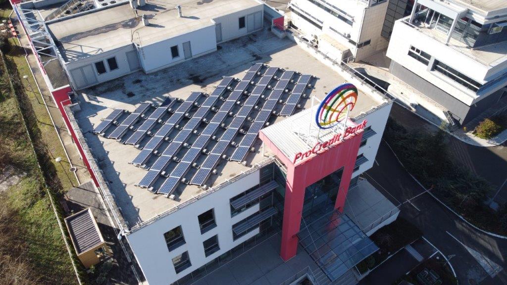 Na krovu centrale u Beogradu instalirana je solarna elektrana kapaciteta 40kW, čime je osigurana delimična energetska nezavisnost, ali još značajnije smanjen je uticaj na zagađenje životne sredine. Ova solarna elektrana na godišnjem nivou proizvede 41.600 kWh, dok njenim korišćenjem ProCredit banka smanjuje uticaj na emisiju štetnih gasova sa efektom staklene bašte u Srbiji za čak 31,5 tonu godišnje.