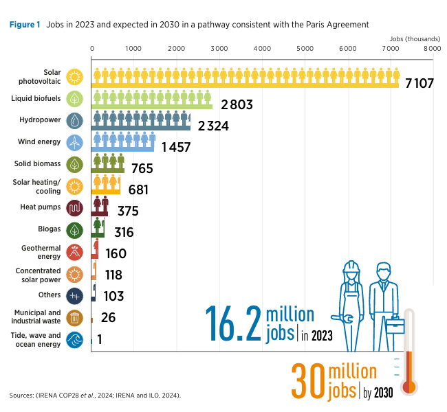 Sektor obnovljivih izvora energije beleži ubrzan rast, ali rodna ravnopravnost u ovoj industriji i dalje ostaje izazov. Prema najnovijem izveštaju Međunarodne agencije za obnovljive izvore energije (IRENA), globalna radna snaga u sektoru OIE brojala je 16,2 miliona ljudi u 2023. godini. Ukoliko se nastavi razvoj u skladu sa ciljevima Pariskog sporazuma, broj zaposlenih mogao bi dostići 30 miliona do 2030. i čak 40 miliona do 2050. godine.