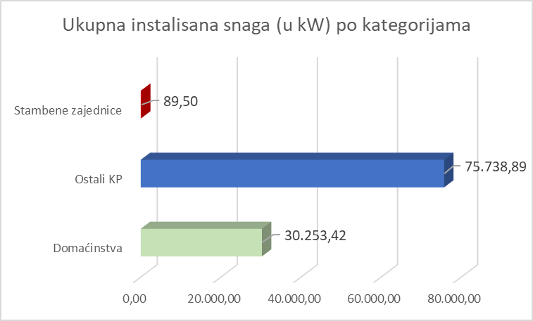 Najbrojniju grupu čine domaćinstva, ukupno 3.667 prozjumera sa instalisanom snagom od 30,2 MW. S druge strane, iako manje zastupljeni po broju, ostali kupci-proizvođači poput industrije, ustanova i drugih pravnih subjekata (1.399), imaju znatno veću (75,7 MW) instalisanu snagu.
