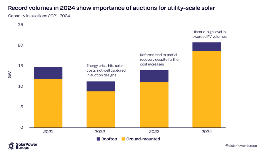 Veliki solarni projekti ostaju relativno otporni, vođeni aukcijama širom Evrope koje podstiču fleksibilne solarne projekte koji se kombinuju sa sistemima skladištenja električne energije ili vetrom.
