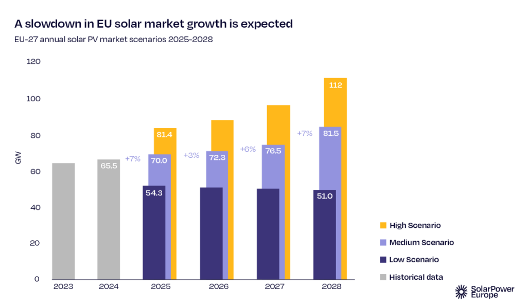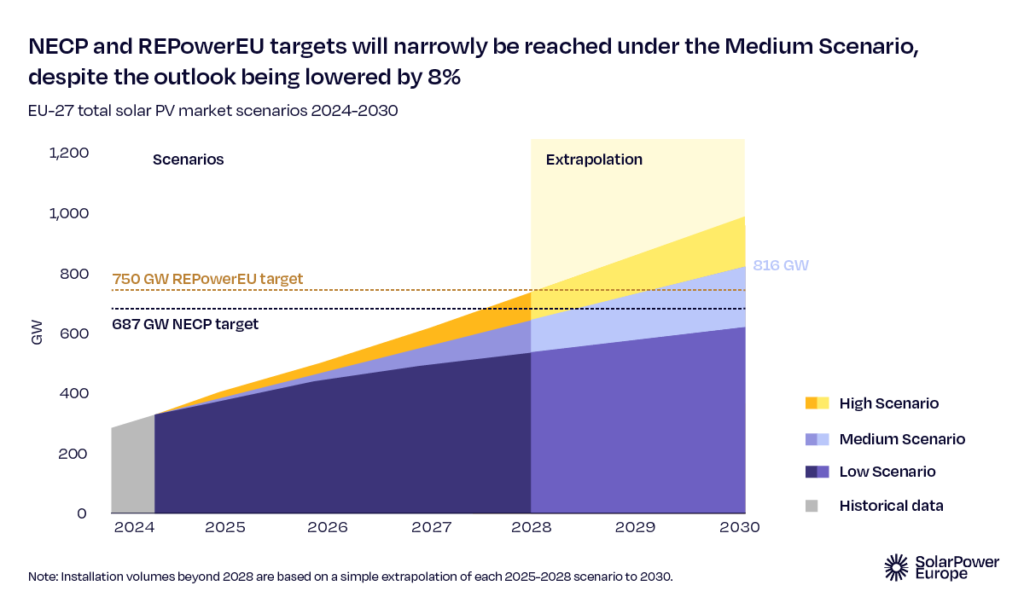 Dok uticaji gasne krize za sada nestaju, sporija solarna prognoza u godinama koje dolaze pripisuje se širim izazovima sistema. Spore stope elektrifikacije potiskuju potražnju, a nedostatak fleksibilnosti energetskog sistema dovodi do solarnog ograničavanja i negativnih cena, razarajući evropsku energetsku sigurnost i konkurentnost.
