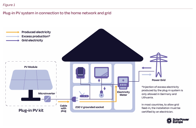 Plug-in solarni fotonaponski proizvodi sve više dobijaju na popularnosti širom Evrope, jer domaćinstva sve više traže načine da proizvedu sopstvenu solarnu električnu energiju. Ovo rešenje obično se sastoji od jednog ili dva solarna PV modula, koji se mogu priključiti u uzemljenu kućnu utičnicu, što ih čini jednostavnim i fleksibilnim solarnim rešenjem za domaćinstva. Uobičajena vrsta plug-in PV sistema je balcony solar. Kako navode iz SolarPower Europe, na nekim tržištima u Evropi, ovi sistemi mogu pokriti do 25% godišnjih potreba za električnom energijom u domaćinstvu.