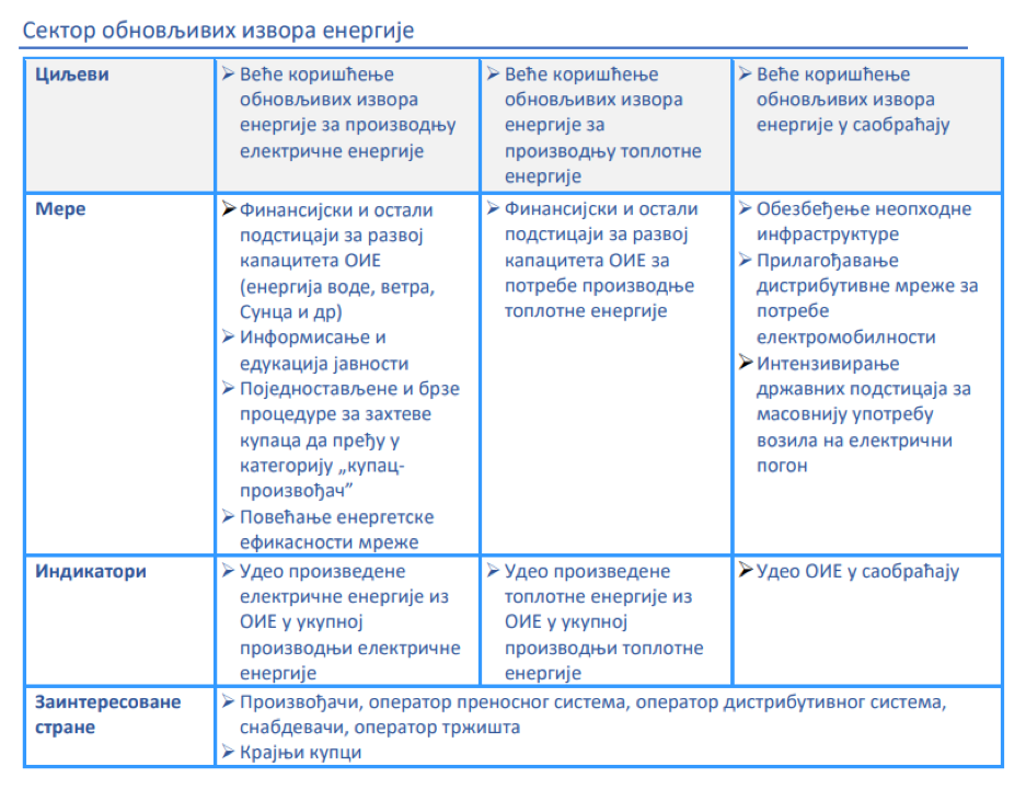 - Razvoj energetskih sektora do 2040. godine – u celini se nalaze posebno OIE;