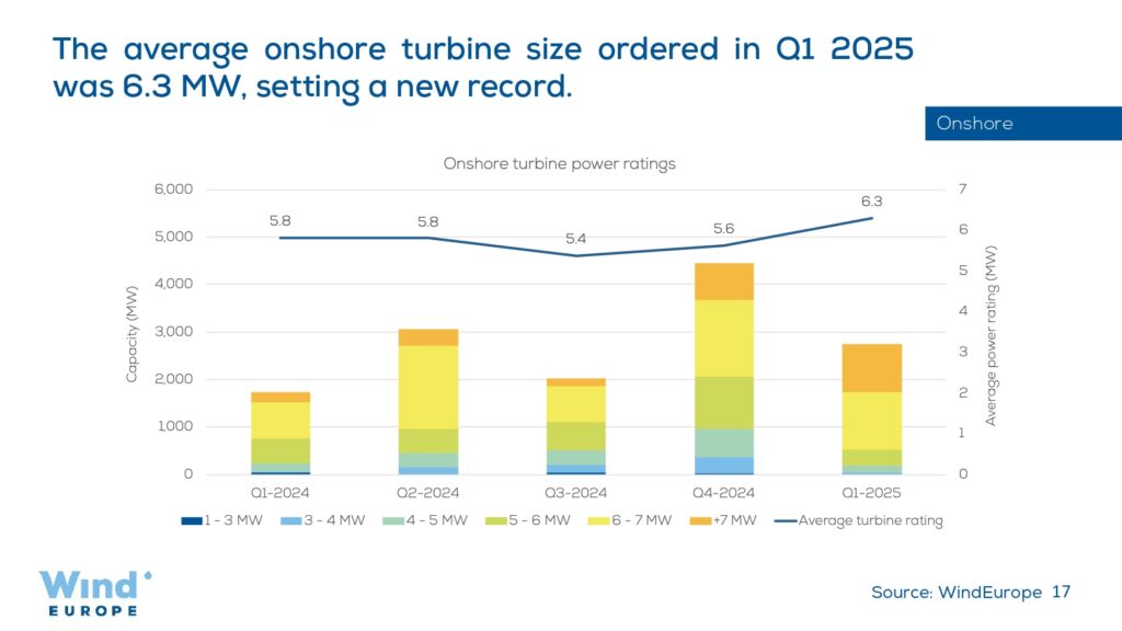 Prosečna snaga onshore turbina naručenih u prvom kvartalu 2025. godine bila je 66,3 MW, postavljajući novi rekord.